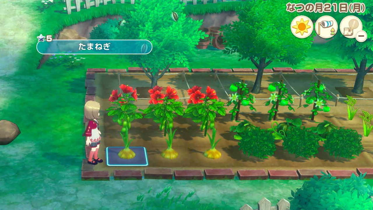 成長しきった時に品質が☆5未満なら、風車で実を苗に加工して、新たに植えること。そうやって果樹の品質を上げていきます。