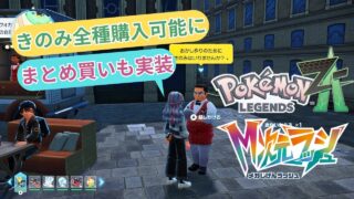 『Pokémon LEGENDS Z-A』の更新データ(Ver.2.0.1)から、ヌーヴォカフェ3号店の店員からきのみ全種が購入可能になり、まとめ買いも出来るようになったお知らせです。ヌーヴォカフェ3号店のきのみ売りには、出現条件があるので要確認。