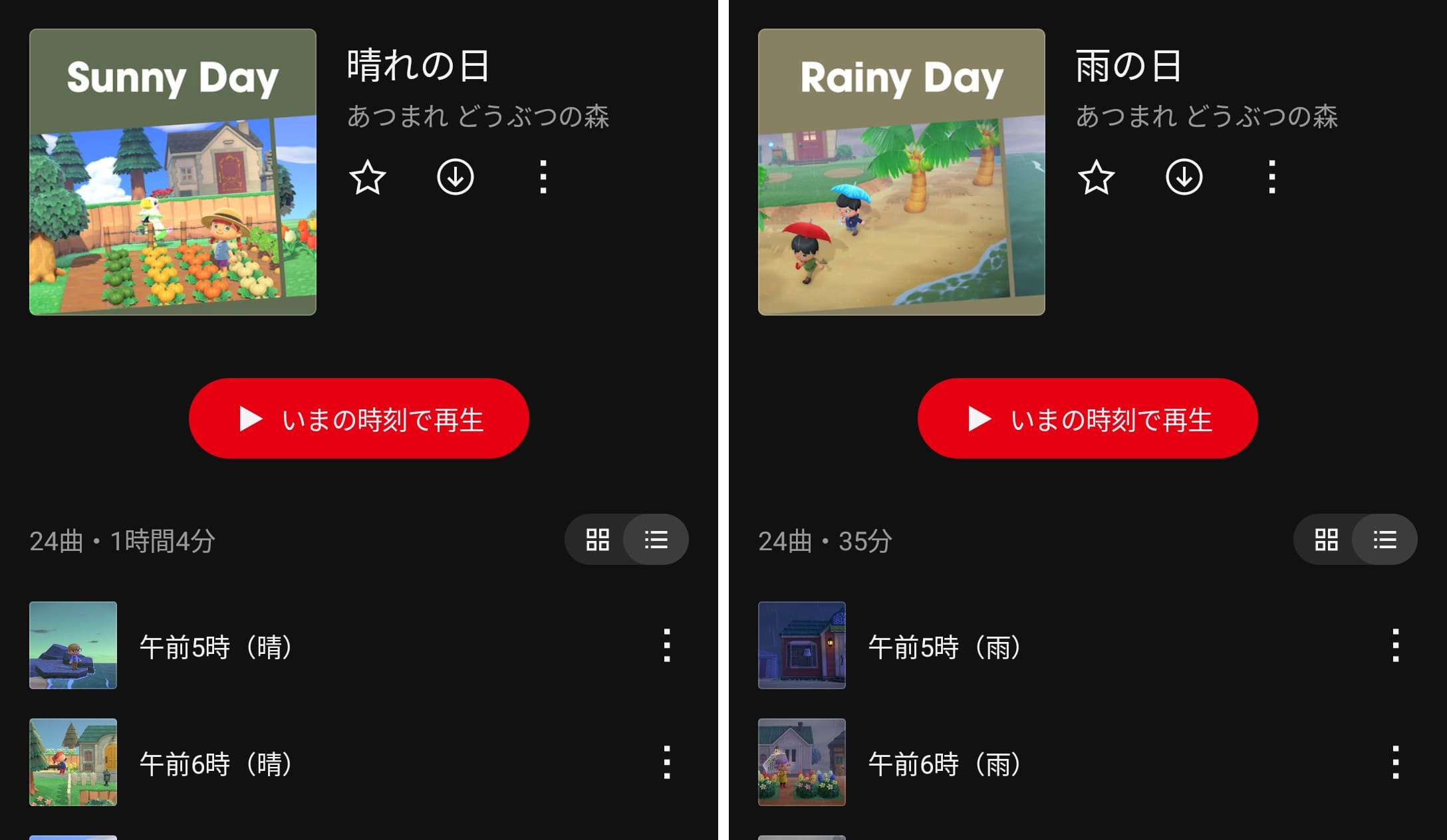 「Nintendo Music」で配信中のあつ森の楽曲に、いまの時刻で再生ボタンが追加されました。晴れの日・雨の日・雪の日のプレイリストで利用できます。作業のお供に、是非!