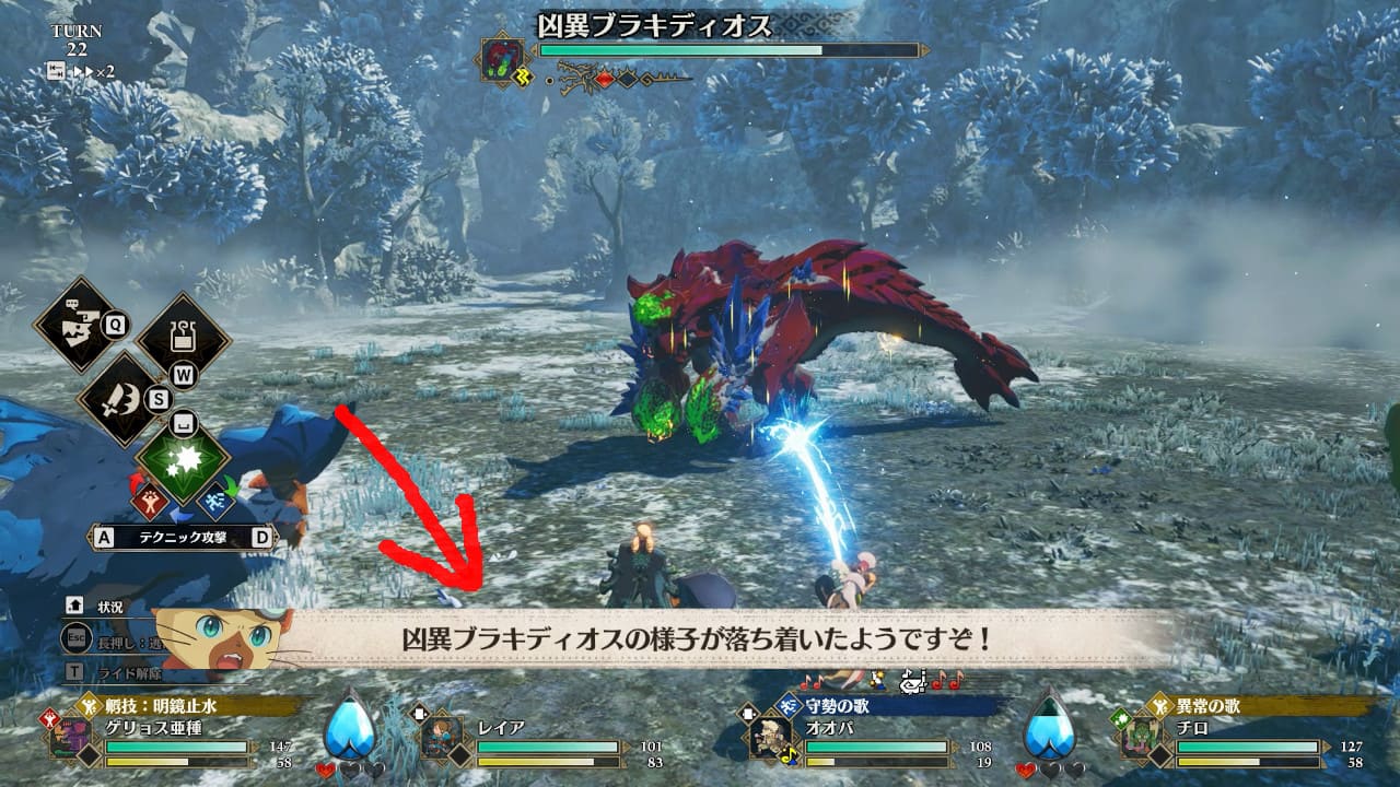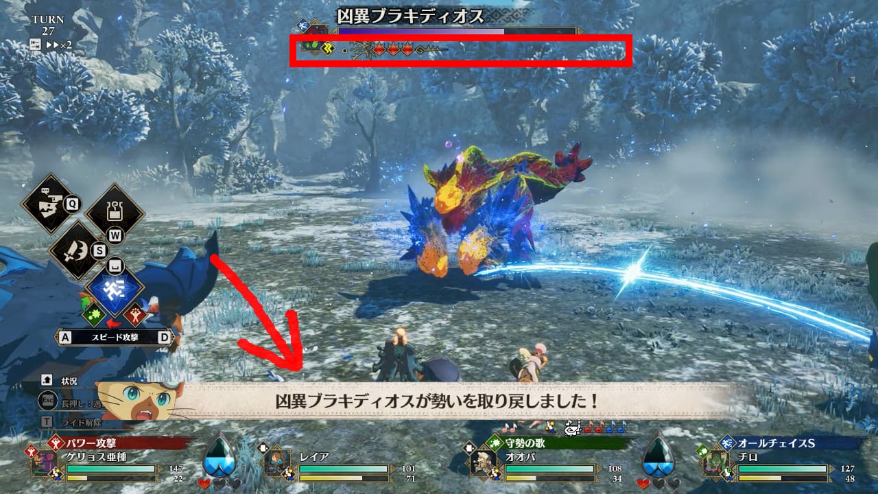 | 「凶異ブラキディオスが勢いを取り戻しました!」 | ブレイクから復帰。攻撃ルーティンを再開 |