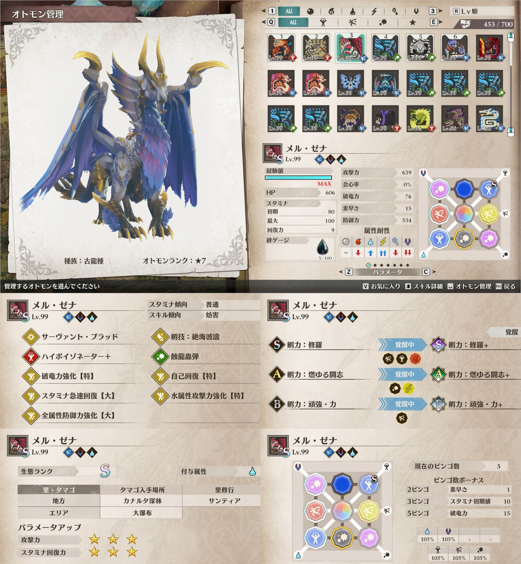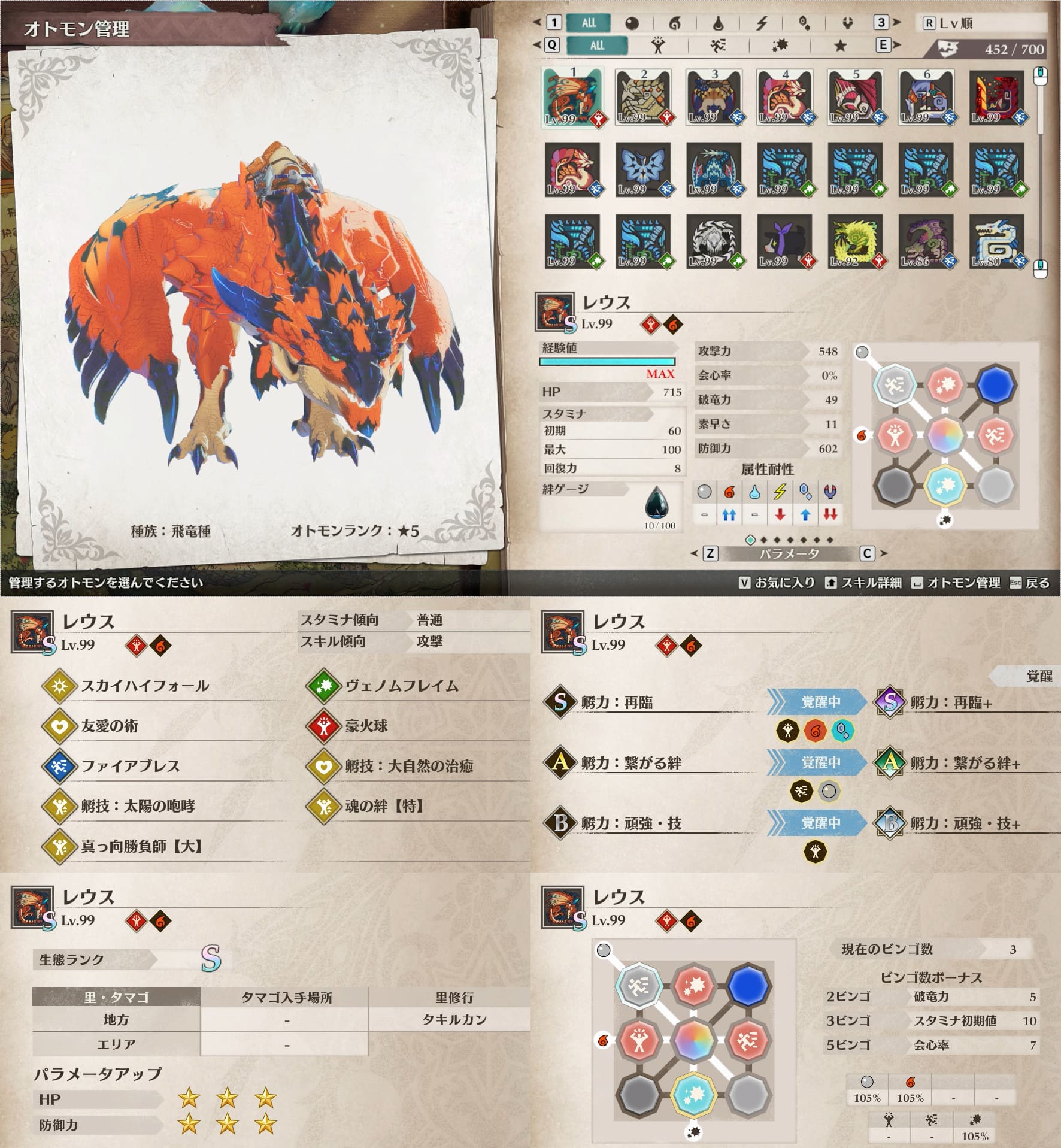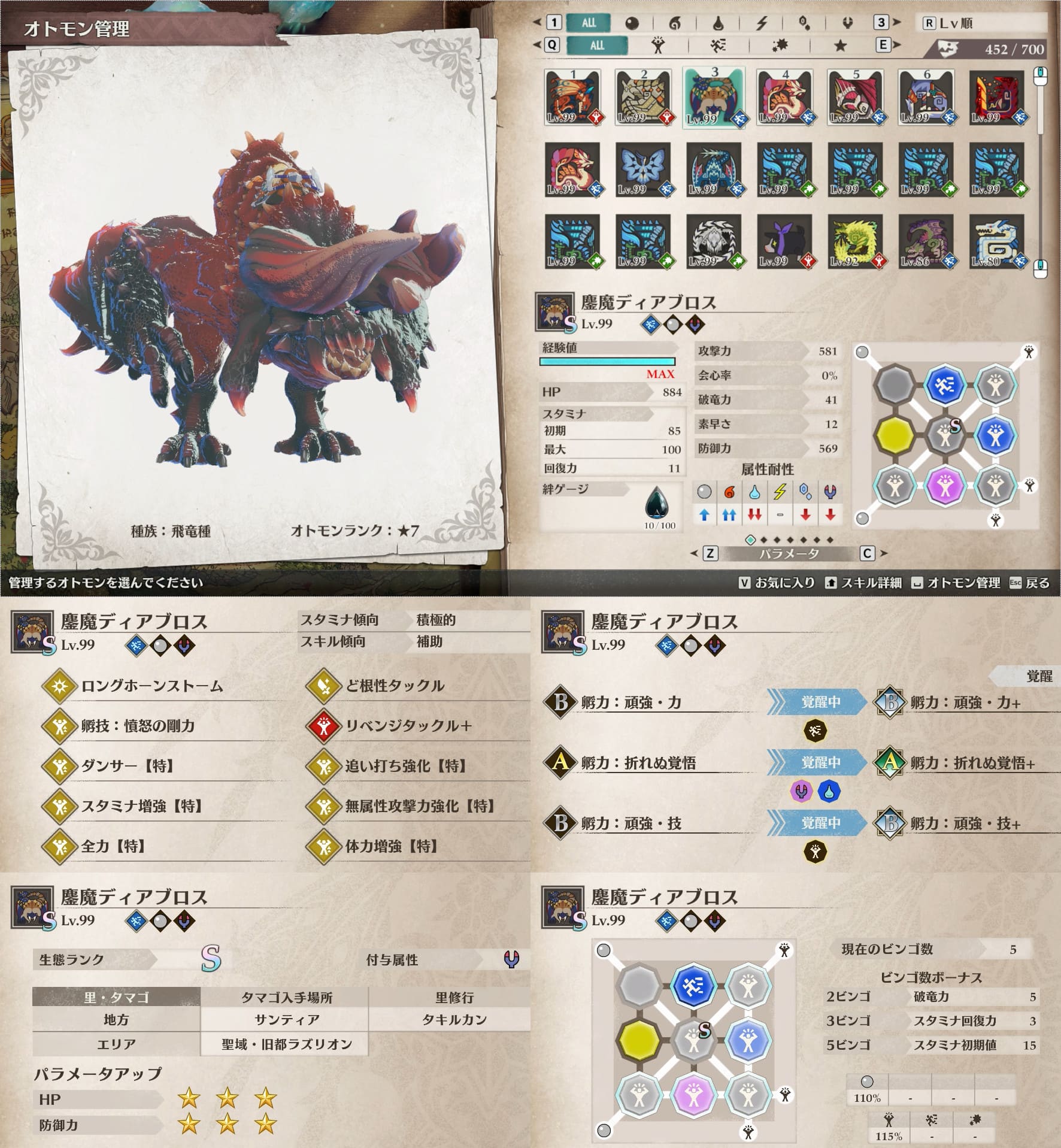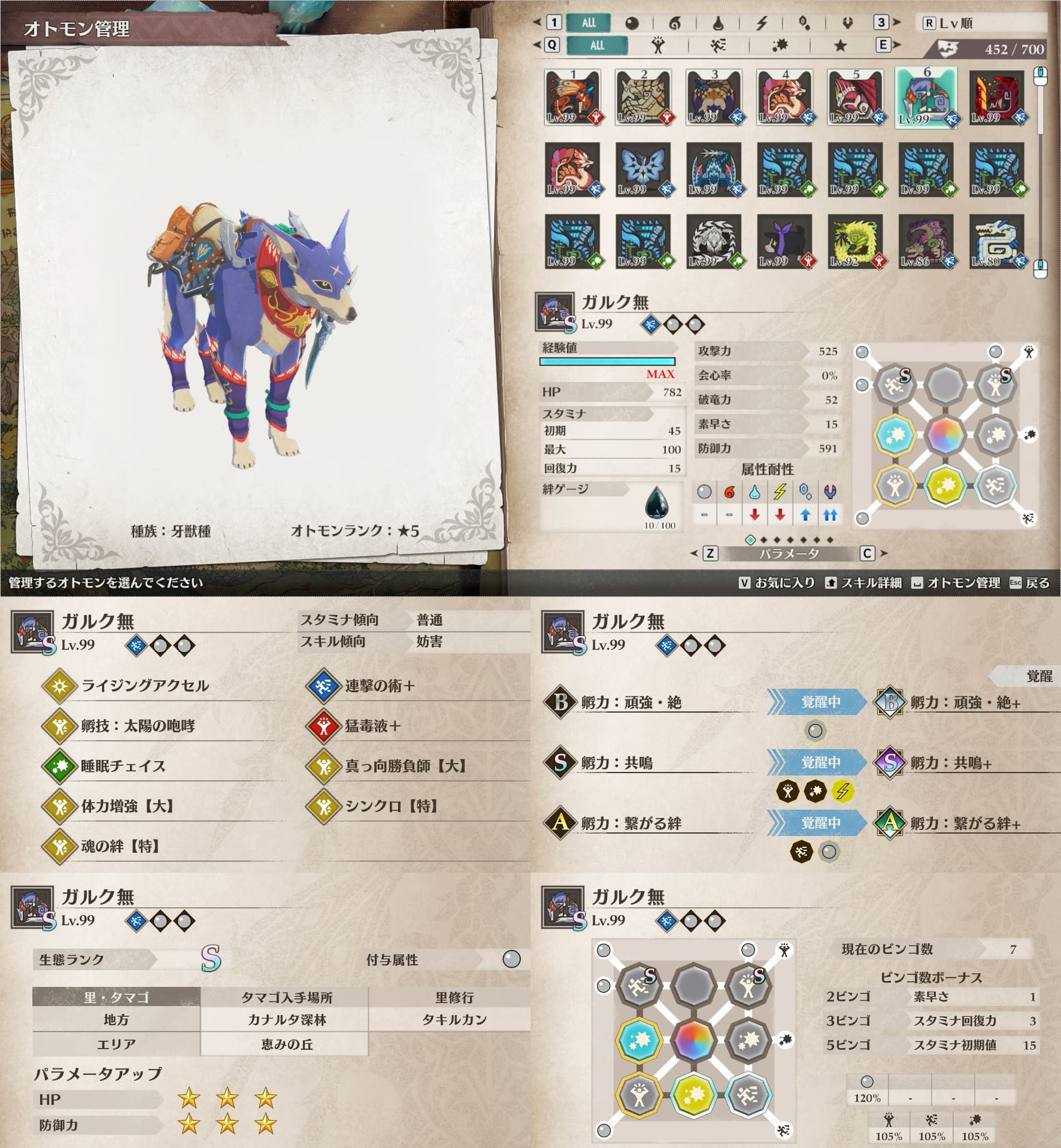 個人的にスタミナ周りが快適なオトモンが好みなので、そういう絆遺伝子構成のオトモン多めです。