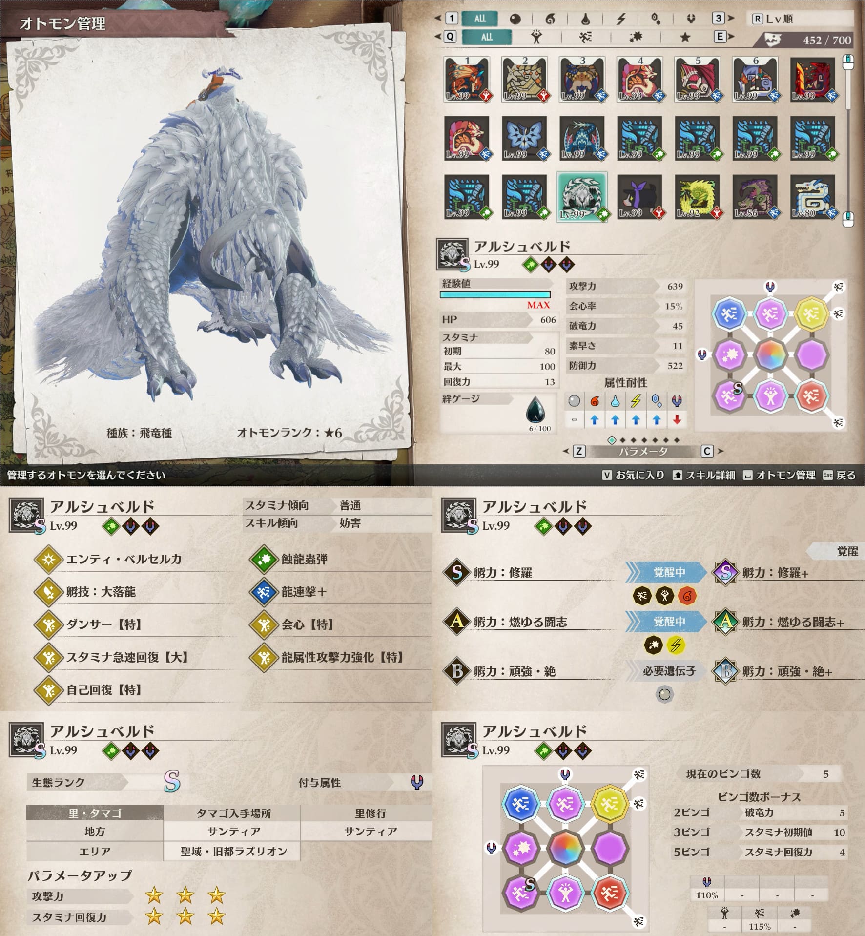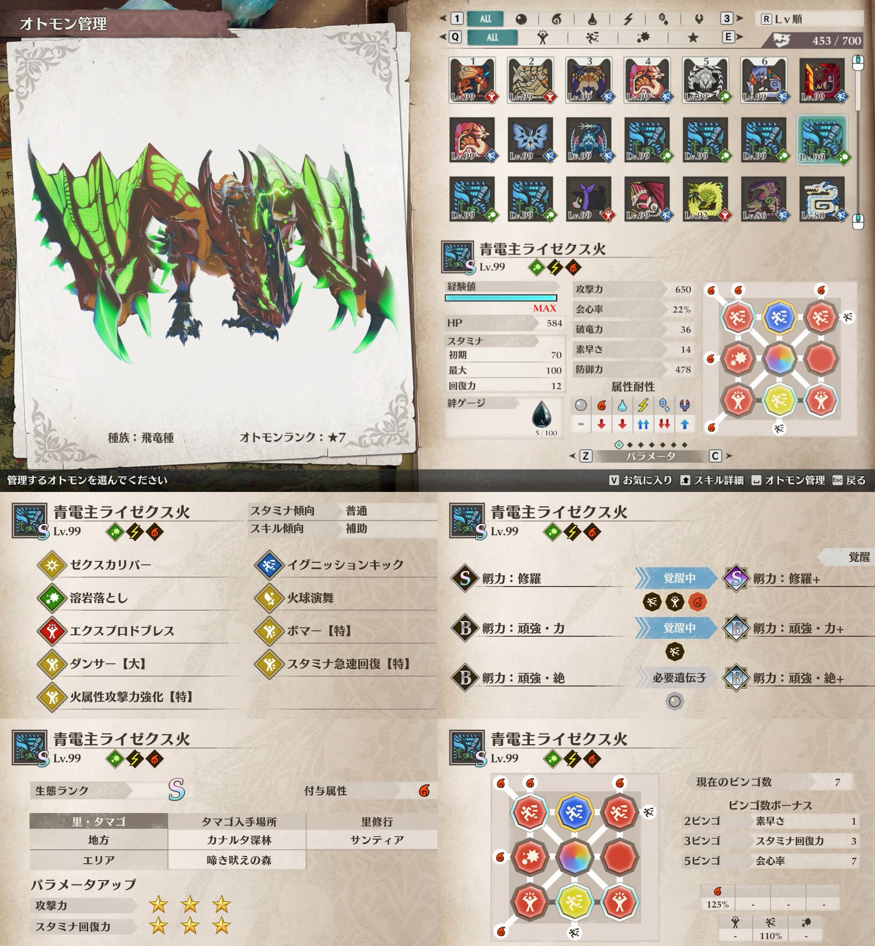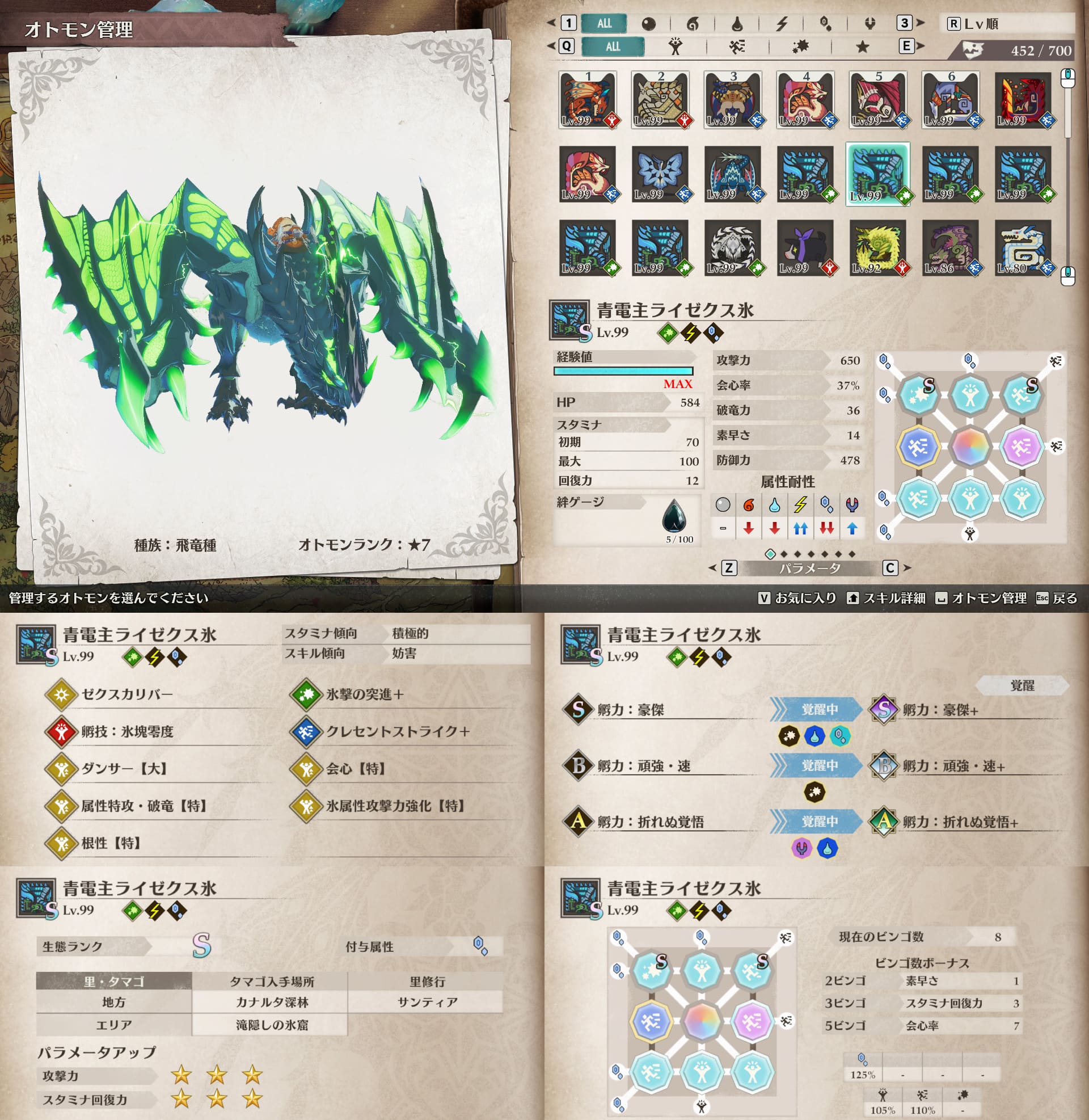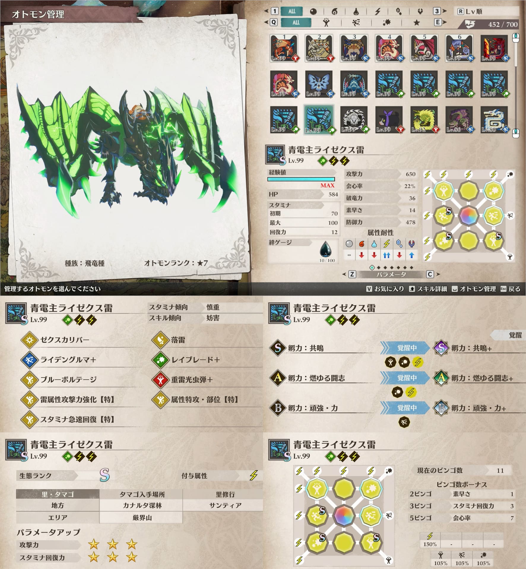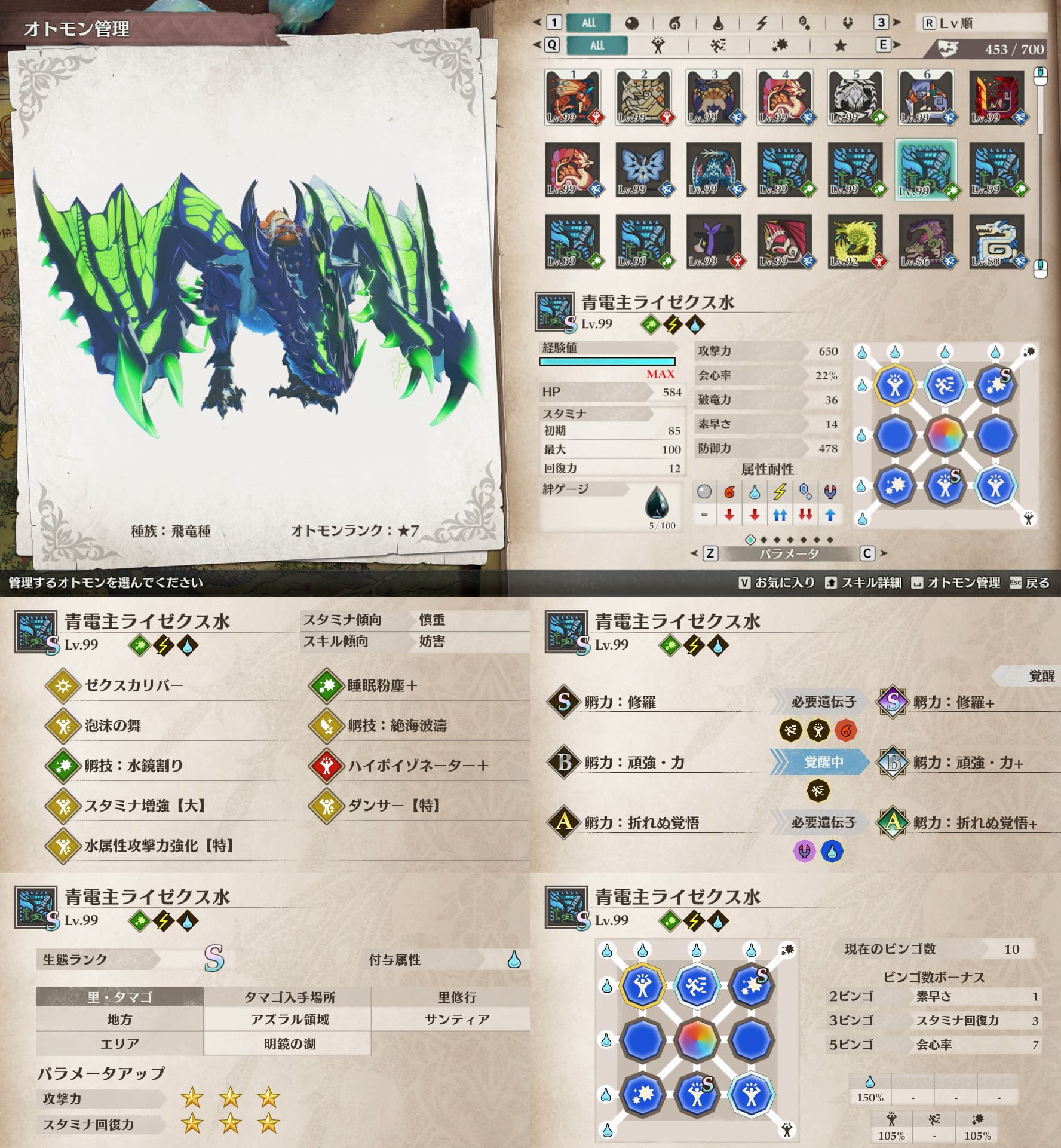 個人的にスタミナ周りが快適なオトモンが好みなので、そういう絆遺伝子構成のオトモン多めです。