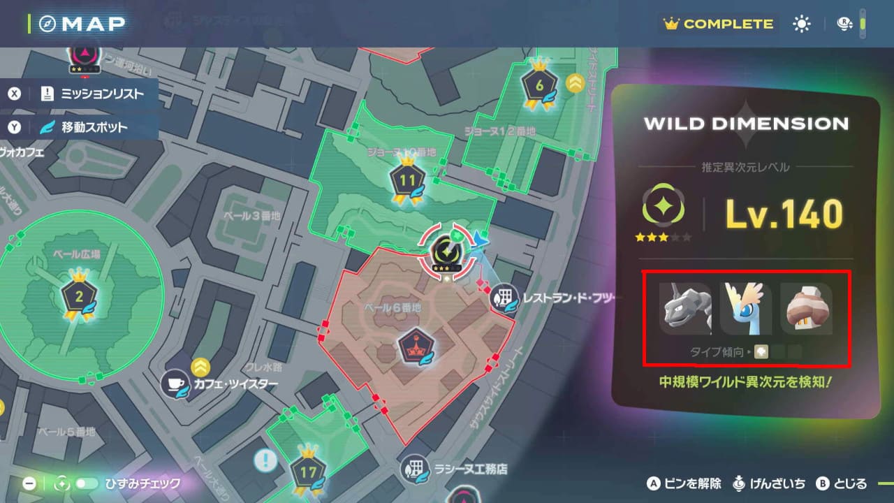 - 異次元ミアレの出現ポケモン(その異次元ミアレのタイプ傾向の中で入れ替わる)